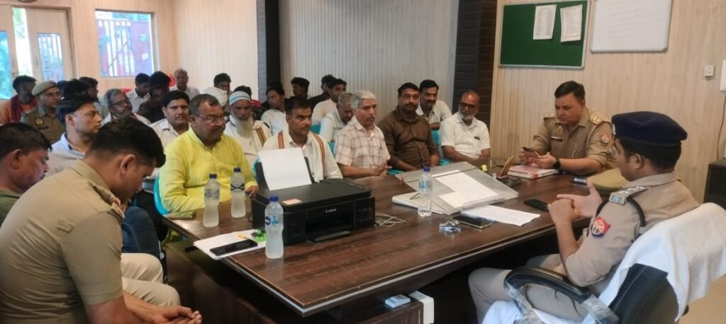बैठक को सम्बोधित करते हुए प्रभारी निरीक्षक शम्भूनाथ सिंह ने बताया कि सात जून को होने बाली ईंद को सदभावना से मनाये, दंगा फिसाद करने बालों को पुलिस सख्ती से निपटेगी, अराजक तत्वों की जानकारी पुलिस को दें, आपकी सूचना गोपनीय रखी जायेगी, वही  क्षेत्राधिकारी नीतीश गर्ग ने बताया कि आप सभी लोग अपने घरों व प्रतिष्ठानों पर सीसीटीवी कैमरे लगवा लें, कैमरों से आपको व पुलिस दोनों को काफी मदद मिल सकती है, कैमरा ठीक एक चौकीदार की तरह काम करेगा,