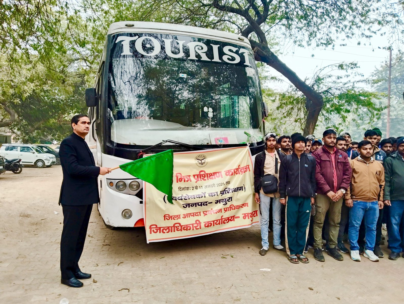 मथुरा। 13 जनवरी 2026 तक राज्य आपदा मोचन बल लखनऊ द्वारा आयोजित आपदा मित्र प्रशिक्षण कार्यक्रम हेतु जनपद के 44 स्वयंसेवकों को प्रशिक्षण हेतु भेजा गया। जिलाधिकारी चंद्र प्रकाश सिंह ने बस को लखनऊ के लिए हरी झंडी दिखाकर रवाना किया। जिलाधिकारी ने अवगत कराया कि 12 दिवसीय प्रशिक्षण कार्यक्रम में जनपद के 24 एन0सी0सी0, 7 नागरिक सुरक्षा, 4 एन0एस0एस0 तथा 9 नेहरू युवा केंद्र, कुल 44 स्वयंसेवकों को आपदा मित्र के प्रशिक्षण हेतु लखनऊ भेजा जा रहा है। सभी को राज्य आपदा मोचन बल लखनऊ द्वारा प्रशिक्षण प्रदान किया जाएगा।