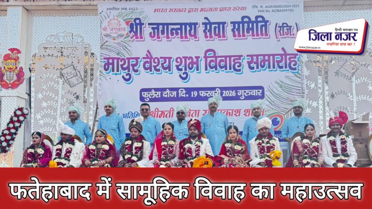 फतेहाबाद कस्बे में फुलेरा दूज के पावन अवसर पर समाज सेवी संस्था श्री जगन्नाथ सेवा समिति द्वारा आयोजित सामूहिक विवाह समारोह का भव्य आयोजन किया गया। कान्हा वन गार्डन में संपन्न इस समारोह में पांच जोड़े विवाह बंधन में बंधे।