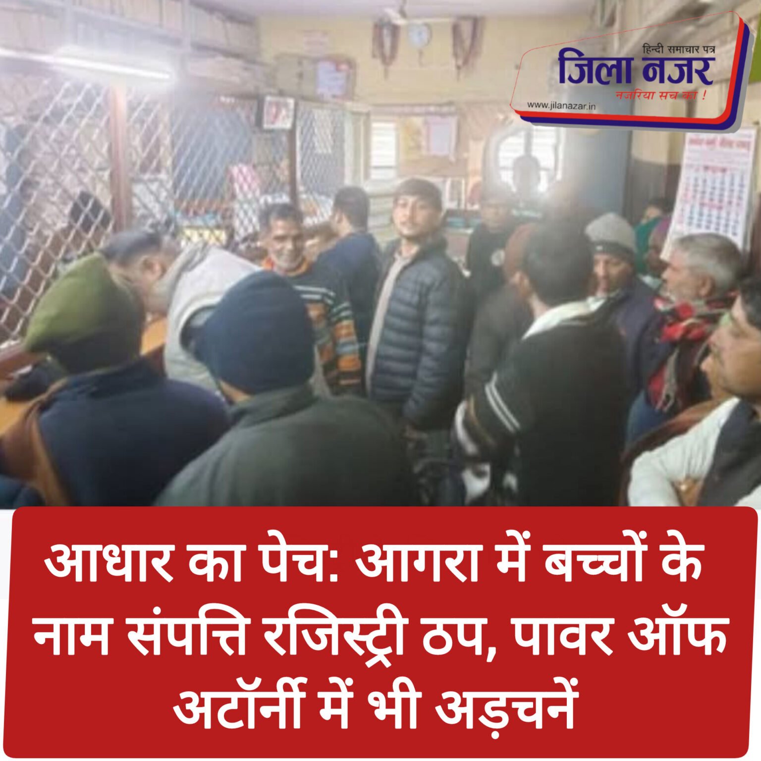 आगरा। फर्जीवाड़े पर लगाम लगाने के उद्देश्य से लागू की गई आधार प्रमाणीकरण प्रणाली ने रजिस्ट्री कार्यालयों में नई मुश्किलें खड़ी कर दी हैं। खासतौर पर नाबालिग बच्चों के नाम संपत्ति हस्तांतरण और रक्त संबंधियों के बीच पावर ऑफ अटॉर्नी के मामलों में तकनीकी खामियां आम लोगों को परेशान कर रही हैं। रजिस्ट्री प्रक्रिया पूरी तरह से प्रभावित हो गई है, जिससे दैनिक रजिस्ट्रेशन की संख्या में भारी गिरावट आई है।