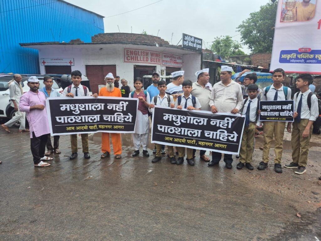 🔴 “मधुशाला नहीं पाठशाला चाहिए!” – आगरा में आम आदमी पार्टी का गरजता विरोध प्रदर्शन