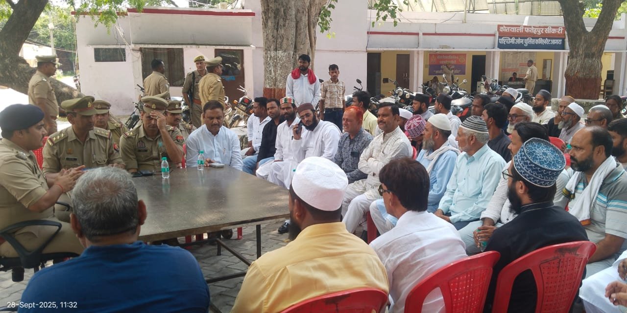 फतेहपुर सीकरी/आगरा। थाना फतेहपुर सीकरी में मुस्लिम धर्मगुरुओं और समाज के संभ्रांत व्यक्तियों के साथ एक शांति समिति की बैठक आयोजित की गई। इस बैठक की अध्यक्षता क्षेत्राधिकारी (ACP) अछनेरा गौरव सिंह ने की। बैठक का उद्देश्य क्षेत्र में सौहार्द और कानून-व्यवस्था को बनाए रखना रहा।