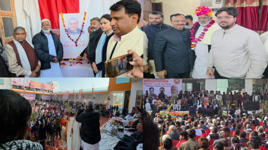 धिमिश्री/आगरा: पूर्व प्रधानमंत्री भारत रत्न अटल बिहारी वाजपेयी की जन्म शताब्दी समारोह-2025 के तहत फतेहाबाद के धिमश्री स्थित रितु गार्डन में ‘अटल स्मृति सम्मेलन’ का आयोजन किया गया। कार्यक्रम दोपहर 12 बजे शुरू हुआ, जिसमें उत्तर प्रदेश सरकार के जल शक्ति मंत्री स्वतंत्रदेव सिंह मुख्य अतिथि के रूप में शामिल हुए।