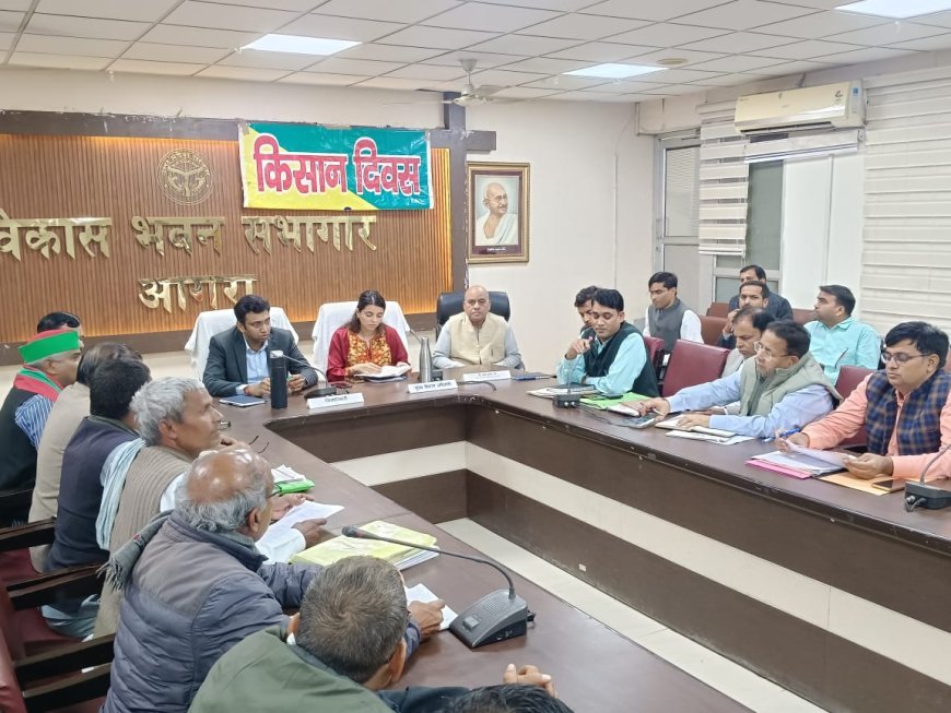 आगरा में किसान दिवस कार्यक्रम विकास भवन स्थित सभागार में आयोजित हुआ। जिलाधिकारी अरविंद मलप्पा बंगारी, मुख्य विकास अधिकारी प्रतिमा सिंह सहित 18 विभागों के अधिकारी मौजूद थे। बैठक के दौरान किसानों ने एक-एक कर विभागीय अनियमितताओं और घोटालों के आरोपों का अंबार लगा दिया।