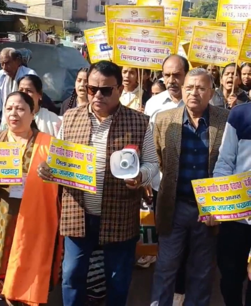 आगरा: अखिल भारतीय ग्राहक पंचायत द्वारा बल्केश्वर कॉलोनी में ग्राहक जागरण पखवाड़े का औपचारिक शुभारंभ किया गया। इस मौके पर आयोजित जागरूकता रैली में सैकड़ों स्कूली छात्राओं ने उत्साह के साथ हिस्सा लिया और हाथों में उपभोक्ता अधिकारों से जुड़े संदेश वाली तख्तियां थामकर लोगों को जागरूक किया।