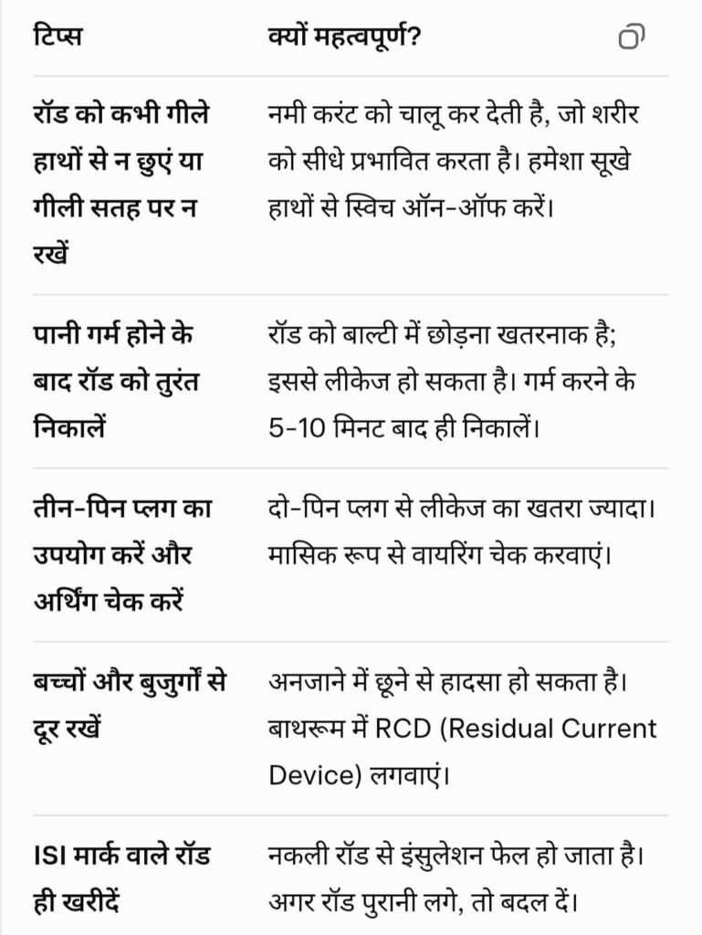 सर्दियों में इमर्शन रॉड का इस्तेमाल आम है, लेकिन यह ‘मौत का जाल’ भी बन सकता है। विशेषज्ञों के अनुसार, हर साल भारत में सैकड़ों ऐसी दुर्घटनाएं होती हैं, जिनमें करंट लगने से जान जाती है। निखिल की मौत हमें सतर्क करती है। यहां कुछ जरूरी सलाहें: