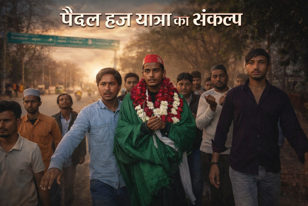 फतेहपुर सीकरी/आगरा। महाराजगंज (उत्तर प्रदेश) निवासी अहमद रज़ा द्वारा हज के लिए पैदल यात्रा करने का संकल्प क्षेत्र में चर्चा का विषय बना हुआ है। लगभग एक माह पूर्व अपने घर से रवाना हुए अहमद रज़ा गुरुवार को विश्वविख्यात सूफी संत हज़रत शेख सलीम चिश्ती की दरगाह, फतेहपुर सीकरी पहुंचे। दरगाह पर हाज़िरी देकर उन्होंने देश में अमन-चैन, भाईचारे और खुशहाली के लिए दुआ की।