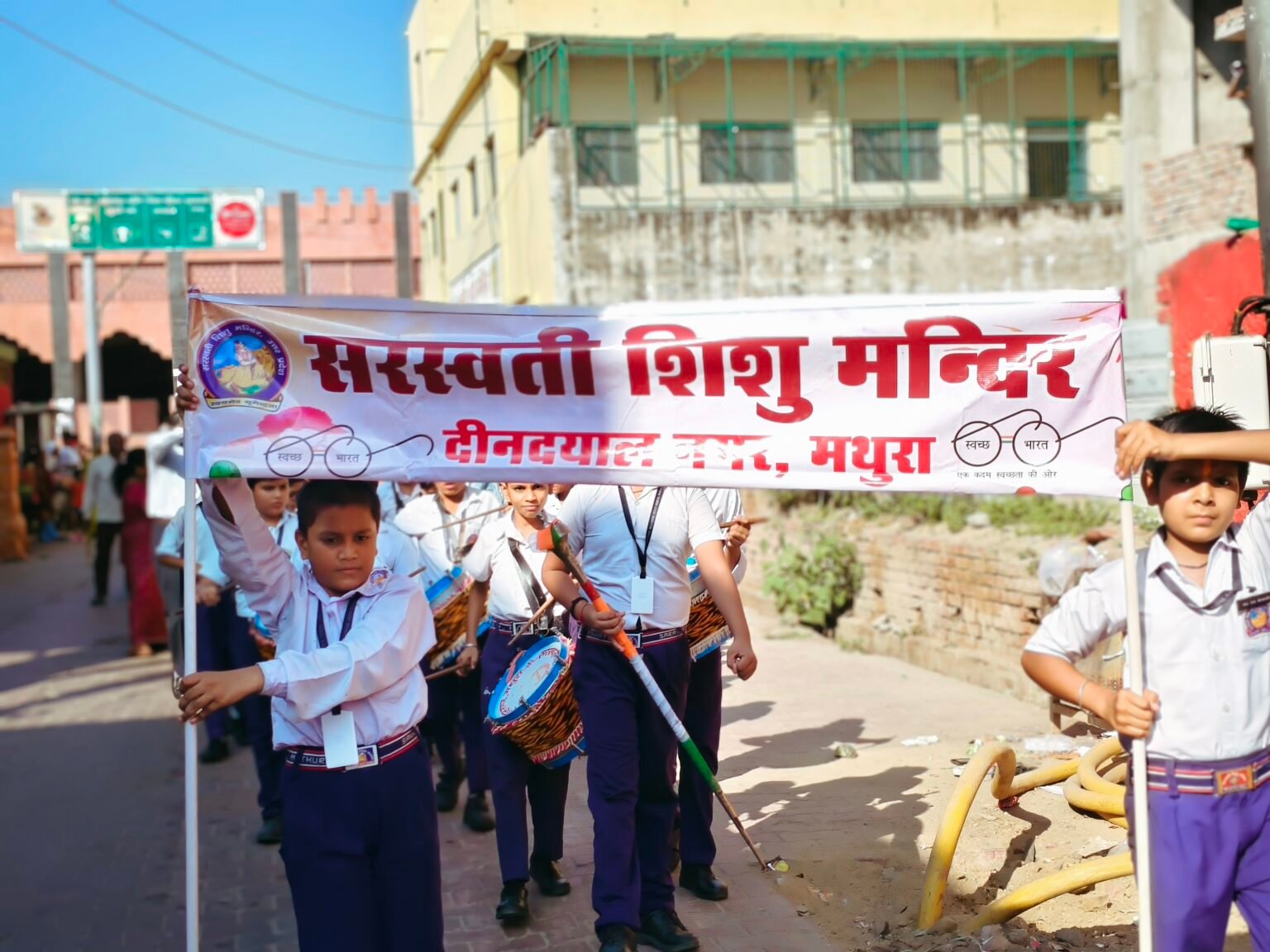 मथुरा।दीनदयाल नगर स्थित सरस्वती शिशु मंदिर में नवरात्र के पावन अवसर पर नन्हे-मुन्ने भैया-बहिनों ने माता के विभिन्न स्वरूपों की झलक प्रस्तुत करते हुए एक भव्य रैली निकाली। यह रैली विद्यालय प्रांगण से प्रारंभ होकर होली गेट तक गई और पुनः विद्यालय परिसर में आकर संपन्न हुई।