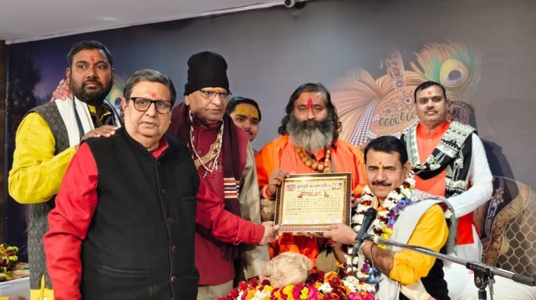 ब्रज भूमि कल्याण परिषद के द्वारा भागवत प्रवक्ताओं को सम्मानित किया