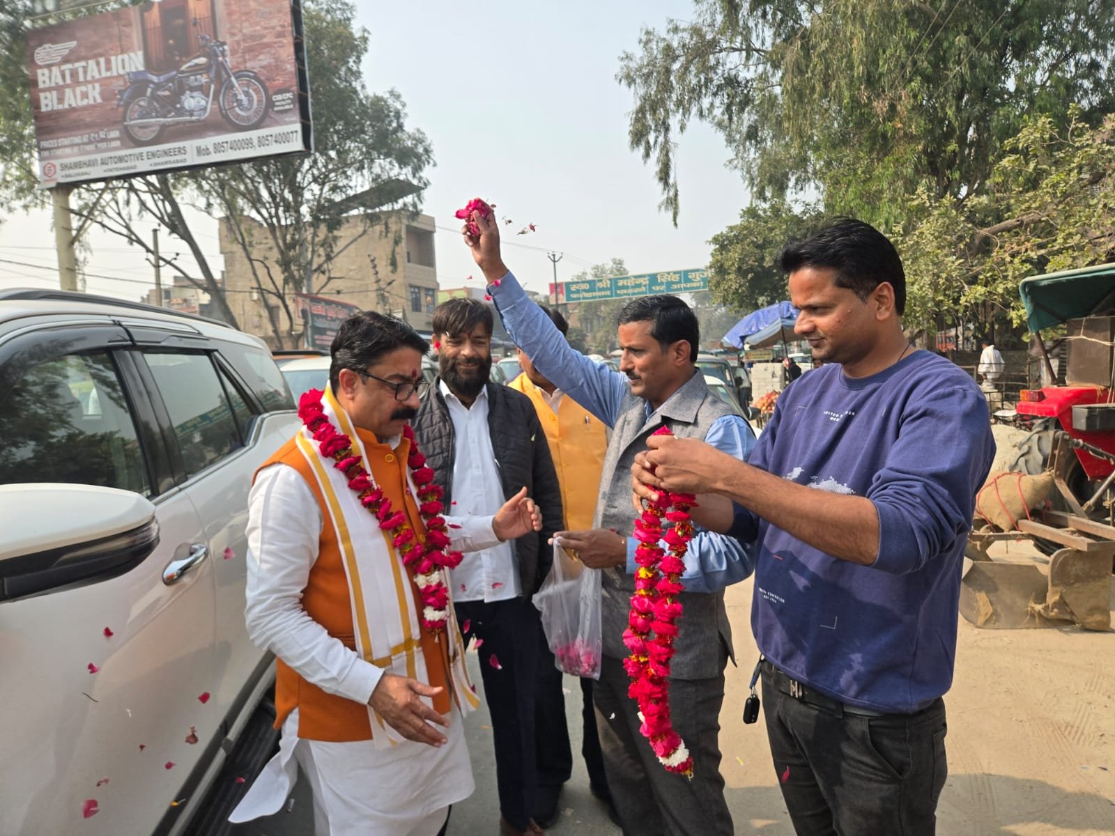 स्वागत के दौरान अध्यक्ष प्रतिनिधि रवि प्रकाश शल्या पूर्व सभासद अंकित गुप्ता भाजपा मंडल अध्यक्ष निक्की पाराशर सुभाष वर्मा सभासद निखिल गुप्ता सचिन कर्दम आदि भाजपा कार्यकर्ता मौजूद थे।