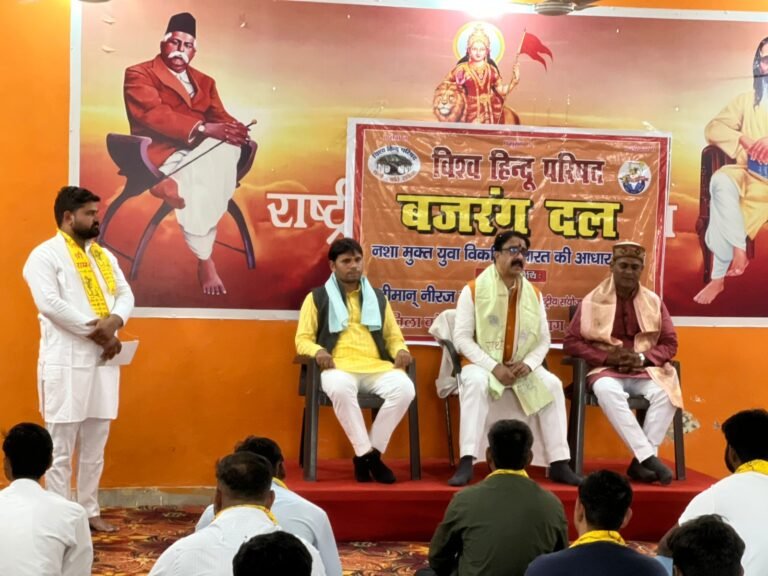 जिसमें आगामी कार्यक्रम की योजना पर विचार कर योजना तैयार की गई जिसमे नशा मुक्त भारत धर्म रक्षा निधि तेगबादुर बलिदान दिवस और जनवरी में महीने में होने वाले त्रिशूल दीक्षा कार्यक्रम को लेकर मथनकर रूप रेखा बनाई गई वही नीरज जी ने कहा कि बजरंगदल लगातार देश और हिन्दू धर्म के लिए कार्य कर रहा हा बजरंगदल के द्वारा अभी रक्तदान शिविर पूरे देश में लगाए गए अभी तक लाखों विधर्मियों से गाय की रक्षा हिन्दू बहन बेटियों कि रक्षा करने का काम बजरंग दल ने किया है।