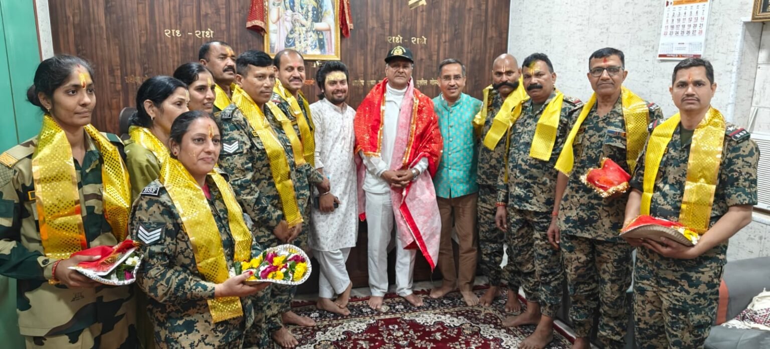 बरसाना। देश की सीमाओं की रक्षा करने वाले सीमा सुरक्षा बल (बीएसएफ) के जवानों ने बरसाना स्थित विश्व प्रसिद्ध राधारानी मंदिर में सेवा और भक्ति का अनूठा उदाहरण प्रस्तुत किया। दर्शन के लिए पहुंचे जवानों ने मंदिर प्रांगण में सफाई कर स्वच्छता का संदेश दिया, जिसे देखकर श्रद्धालु भावविभोर हो उठे। मथुरा के पास स्थित 167वीं बटालियन का लगभग 40 महिला एवं पुरुष जवानों का दल अपने डिप्टी कमांडेंट चंद्रपाल सिंह के नेतृत्व में राधारानी मंदिर दर्शन के लिए पहुंचा था। जवानों ने राजभोग आरती के दर्शन किए। इसके बाद मंदिर के पट बंद होने पर नियमित सफाई कार्य शुरू हुआ। सफाई होते देख जवान स्वयं को रोक नहीं सके और वहां रखे झाड़ू और वाइपर उठाकर सफाई कार्य में जुट गए।मंदिर रिसीवर सुशील गोस्वामी ने बताया कि मंदिर के सफाई कर्मचारी अपने कार्य में लगे थे, तभी बीएसएफ जवानों ने भी उनके साथ मिलकर मंदिर के आंगन, जगमोहन और अन्य स्थानों पर झाड़ू लगाई। इसके बाद पूरे मंदिर को पानी से धोकर वाइपर से साफ किया गया। इस सेवा कार्य में महिला जवानों ने भी बढ़-चढ़कर भागीदारी निभाई।जवानों की भक्ति और सेवा भावना को देखकर वहां मौजूद श्रद्धालु अभिभूत हो गए। मंदिर प्रबंधन ने जवानों के इस सराहनीय कार्य के लिए उन्हें सम्मानित किया। रिसीवर सुशील गोस्वामी और डॉ. यज्ञ पुरुष गोस्वामी ने सभी जवानों को प्रसादी पटका पहनाकर राधारानी का प्रसाद भेंट किया।डॉ. यज्ञ पुरुष गोस्वामी ने कहा कि बीएसएफ के जवान दर्शन के लिए आए थे, लेकिन मंदिर प्रांगण में सफाई होते देख वे स्वयं को रोक नहीं पाए और सेवा में जुट गए। जवानों का यह सेवाभाव सभी के लिए प्रेरणादायक है।
