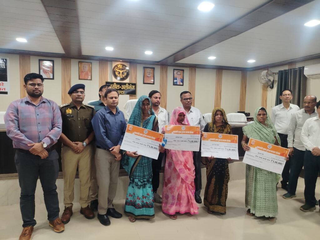अलीगंज/एटा। तहसील समाधान दिवस के अवसर पर मुख्यमंत्री कृषक दुर्घटना कल्याण योजना के तहत अलीगंज तहसील में 12 महिलाओं को 5-5 लाख रुपये के चेक वितरित किए गए।