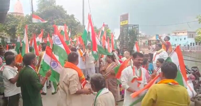 राधाकुंड में भाजपाइयों की भव्य तिरंगा यात्रा, पुष्पवर्षा कर नागरिकों ने किया स्वागत