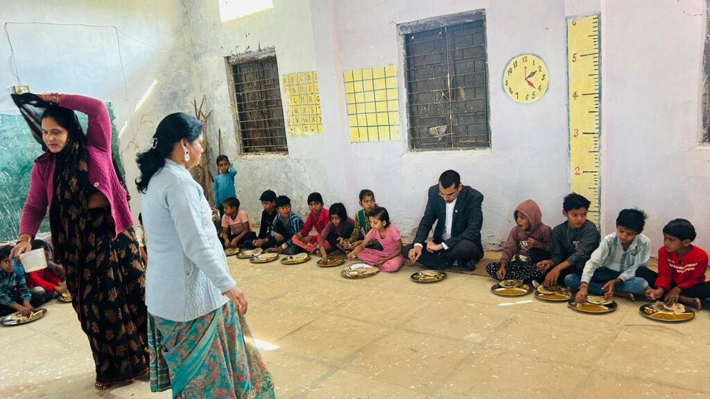 मुरैना/मप्र: कलेक्टर श्री लोकेश कुमार जांगिड़ ने सोमवार को देवगढ़, तोर और तिलावली ग्राम पंचायतों का निरीक्षण कर शिक्षा, स्वास्थ्य तथा पेयजल व्यवस्थाओं की वास्तविक स्थिति जानी। उन्होंने शासकीय प्राथमिक विद्यालय तोर में मध्याह्न भोजन की गुणवत्ता परखी और बच्चों के साथ बैठकर भोजन किया। ग्रामीणों से मुलाकात में खेल मैदान पर अतिक्रमण और अनुसूचित जाति बस्ती में नल-जल योजना बंद होने से पेयजल संकट की शिकायतें मिलीं, जिनके त्वरित निराकरण के निर्देश दिए गए।
