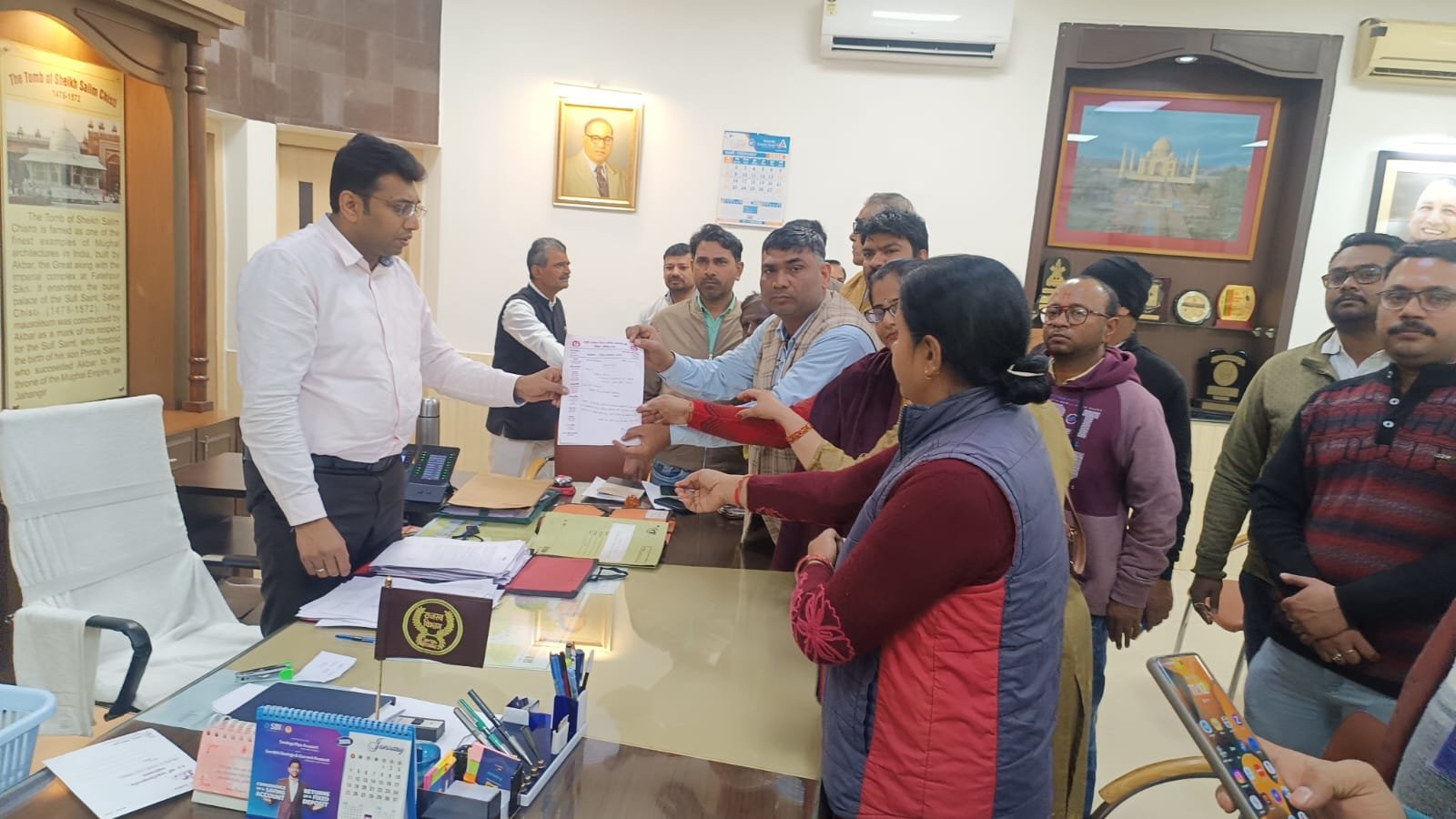 फतेहाबाद/आगरा: राष्ट्रीय स्वास्थ्य मिशन (एनएचएम) संविदा कर्मचारी संघ के अध्यक्ष महेंद्र सिंह यादव के नेतृत्व में गुरुवार को कर्मचारियों ने अपनी विभिन्न मांगों को लेकर जिलाधिकारी को ज्ञापन सौंपा। इस दौरान कर्मचारियों ने संविदा से जुड़ी समस्याओं और लंबित मांगों को विस्तार से रखा।