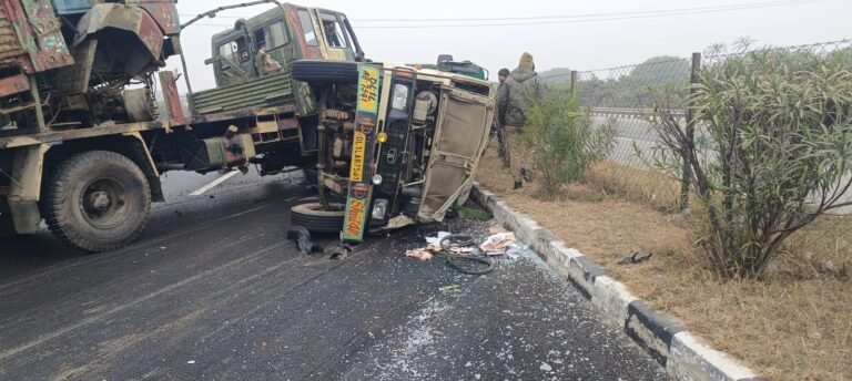 फतेहाबाद/आगरा: थाना क्षेत्र अंतर्गत आगरा–लखनऊ एक्सप्रेसवे पर किलोमीटर संख्या 31.400 पर सोमवार को जब इलाहाबाद से हरियाणा की ओर सेना के क्षतिग्रस्त वाहन को लेकर जा रही क्रेन टायर फटने से अचानक अनियंत्रित होकर पलट गई। हादसा होते ही एक्सप्रेसवे पर कुछ देर के लिए यातायात बाधित हो गया और राहगीरों में अफरा-तफरी मच गई।