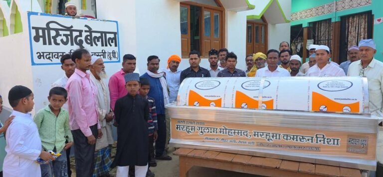 बस्ती। गर्मी के दिनों में मृत शरीर की सुरक्षा कठिन हो जाता है। हर्रैया तहसील क्षेत्र के ग्राम पंचायत भदावल कला के ग्राम प्रधान रोशन अली और परिवार के सदस्यों नेे अपने पूर्वजों के याद में डेड बॉडी फ्रीजर बॉक्स भदावलखुर्द के मदरसा सिराजुल उलूम के कैशियर अब्दुल खालिक को सौंपा।