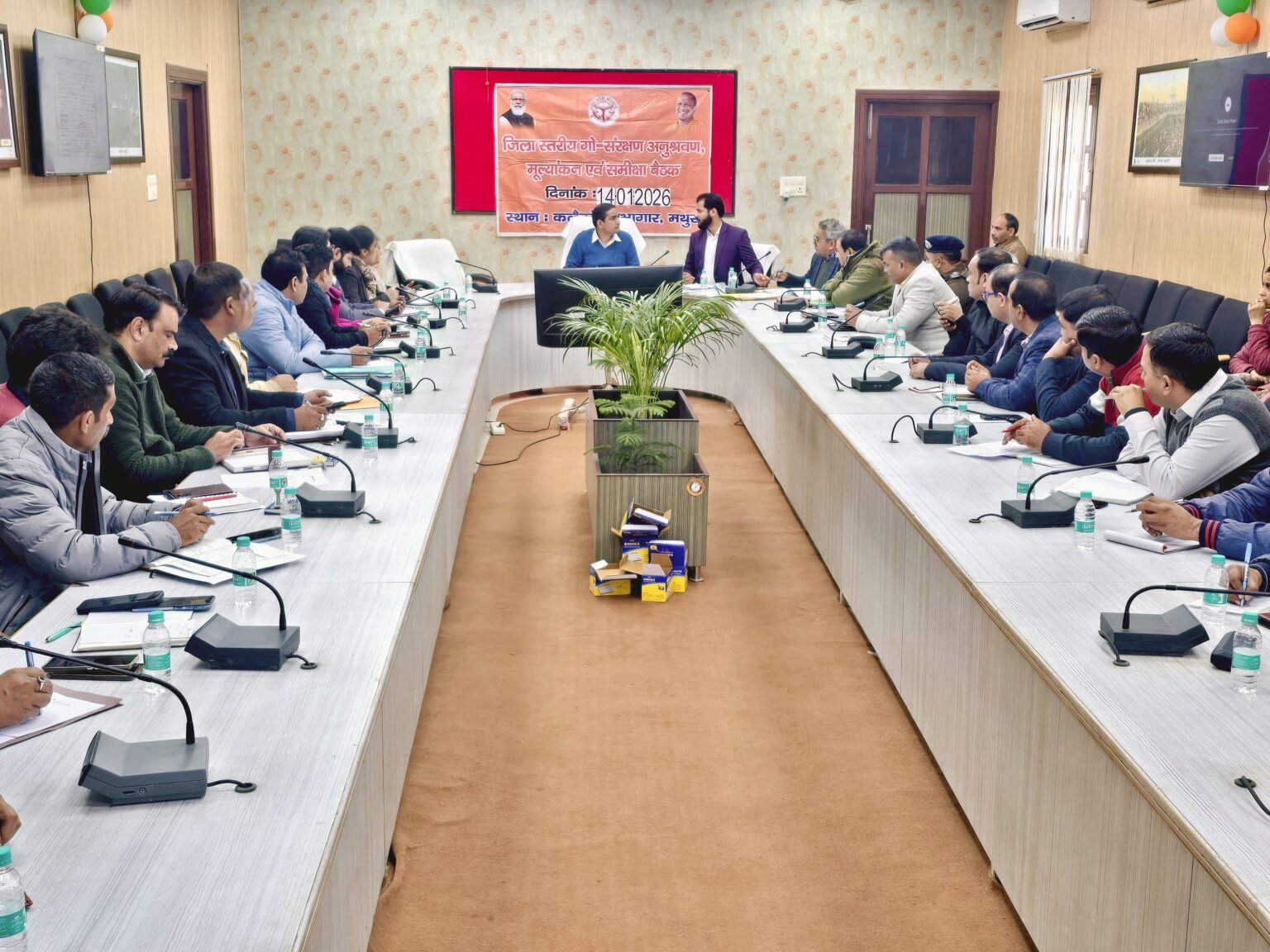 मथुरा। चंद्र प्रकाश सिंह की अध्यक्षता में कलेक्ट्रेट सभागार में जिला स्तरीय गौ-संरक्षण अनुश्रवण, मूल्यांकन एवं समीक्षा बैठक आयोजित हुई। बैठक में जनपद में संचालित गौ-संरक्षण योजनाओं, गौआश्रय स्थलों की व्यवस्थाओं, संरक्षण कार्यों की प्रगति तथा संसाधनों के प्रभावी उपयोग की समीक्षा की गई।