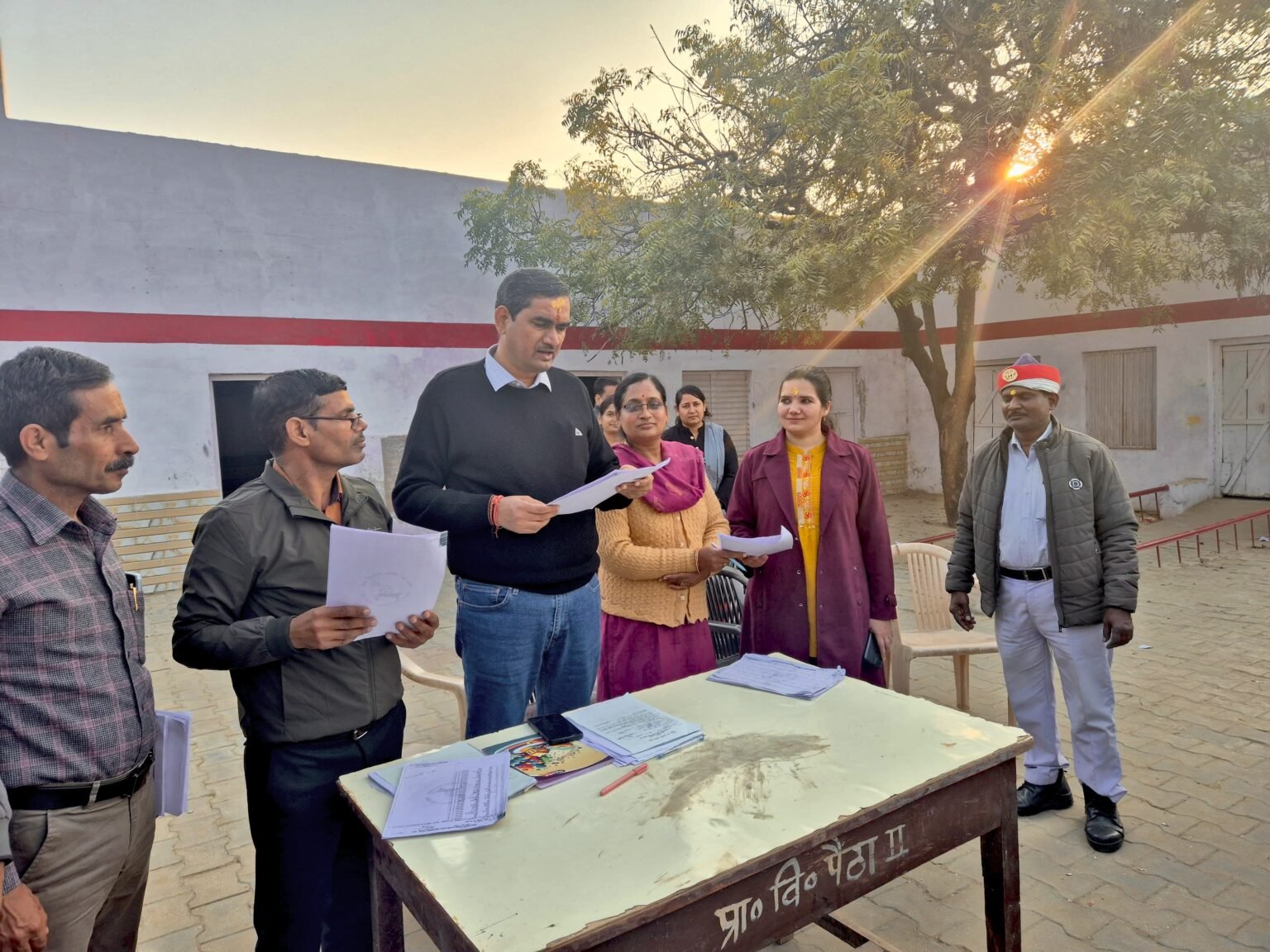 मथुरा। पंचायत चुनाव की तैयारियों के तहत जिलाधिकारी चंद्र प्रकाश सिंह ने तहसील गोवर्धन के उच्च प्राथमिक विद्यालय पैंठा में स्थित मतदान बूथ का निरीक्षण किया। उन्होंने वोटर लिस्ट वेरिफिकेशन कार्य की प्रगति का जायजा लिया और संबंधित अधिकारियों को आवश्यक दिशा-निर्देश दिए।