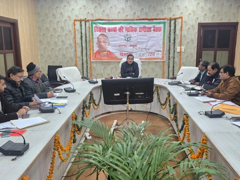 मथुरा। जिलाधिकारी चंद्र प्रकाश सिंह की अध्यक्षता में जनपद में संचालित विभिन्न विकास कार्यों की समीक्षा बैठक संपन्न हुई। बैठक में जिलाधिकारी ने सभी विभागों की कार्यप्रगति की विस्तृत समीक्षा करते हुए अपेक्षित प्रगति न होने और कार्यों में लापरवाही पर कड़ी नाराजगी व्यक्त की।