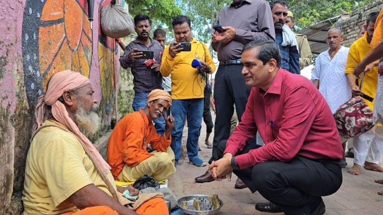 मथुरा। जिलाधिकारी चंद्र प्रकाश सिंह मंगलवार को यमुना की बाढ़ का जायजा लेने वृंदावन पहुंचे। निरीक्षण के दौरान वह पैदल ही परिक्रमा मार्ग से गुजर रहे थे, तभी उनकी नजर सड़क किनारे बैठे भिक्षुकों पर पड़ी। डीएम स्वयं जमीन पर बैठकर एक भिक्षुक से बातचीत करने लगे। पूछने पर भिक्षुक ने बताया कि वह बंगाल का रहने वाला है और पिछले दस वर्षों से वृंदावन में रह रहा है। इस पर डीएम ने उसे समझाते हुए कहा कि भीख मांगना उचित नहीं है। उन्होंने दोनों हाथ जोड़कर नसीहत दी कि यदि कुछ मांगना है तो भगवान से मांगो, लोगों से नहीं। डीएम का यह वीडियो इंटरनेट मीडिया पर तेजी से वायरल हो रहा है।