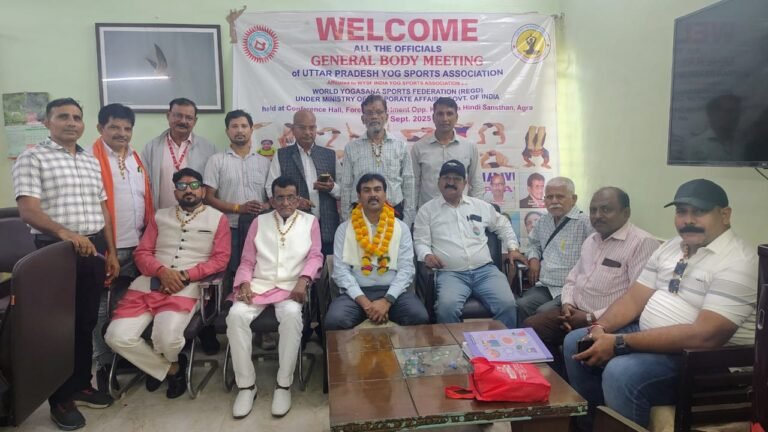 आगरा। उत्तर प्रदेश योग स्पोर्ट्स एसोसिएशन की एक बैठक केंद्रीय हिंदी संस्थान के पास समागार पर संपन्न हुई जिसमें सर्वसम्मति से डॉक्टर अनिल कुमार पटेल को उत्तर प्रदेश योग स्पोर्ट्स एसोसिएशन का अध्यक्ष चुना गया। उनके अतिरिक्त आगरा के ही श्री राकेश कुमार गुप्ता को उपाध्यक्ष चुना गया जो के श्री आनंद कुमार सक्सेना के महासचिव बनने पर रिक्त चल रहा था ।