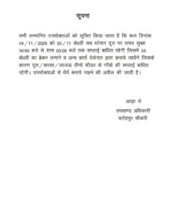 फतेहपुर सीकरी/ किरावली/आगरा। एस आई आर जैसे महत्वपूर्ण कार्य में लगे निर्वाचन कार्मिकों (BLO सुपरवाइजर) के लिए अन्य कार्यों से पूर्ण कार्य मुक्ति की मांग समिति ने रखते हुए उपजिलाधिकारी के नाम तहसीलदार किरावली को ज्ञापन सौंपा।