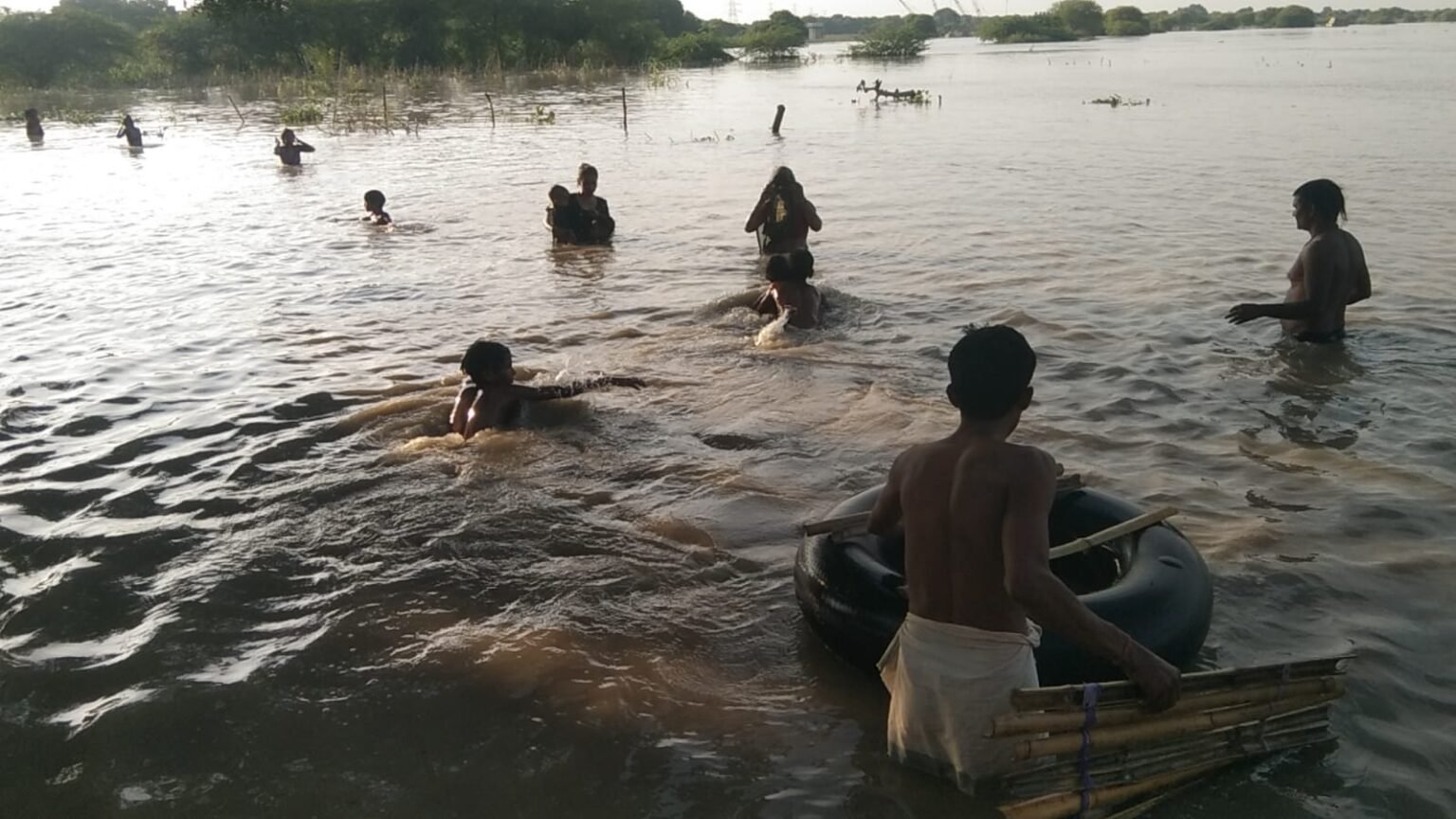 फतेहाबाद/आगरा: इस समय यमुना में आई बाढ़ पूरे उफान पर है वहीं प्रशासन द्वारा बाढ़ ग्रस्त ग्रामीण क्षेत्र का दौरा कर ग्रामीणों से यमुना में अपने पशुओं को ना ले जाने और यमुना में नहाने के लिए न जानेकी अपील ग्रामीणों से कर रहा है इसके बाद भी ग्रामीण यमुना में कूद कर नहाते देखे जा रहे हैं।