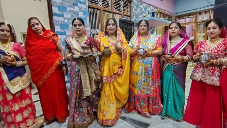 फतेहाबाद/आगरा: शुक्रवार की रात जब आकाश में चाँद धीरे-धीरे उभरा, तो धरती पर सुहागिनों की आँखों में आस्था की चमक उतर आई। लाल साड़ियों में सजी, मेंहदी से रंगे हाथों वाली महिलाएँ जब छलनी से चाँद का दीदार कर रही थीं, तब ऐसा प्रतीत हो रहा था जैसे भारतीय संस्कृति का जीवंत चित्र स्वयं धरती पर उतर आया हो।