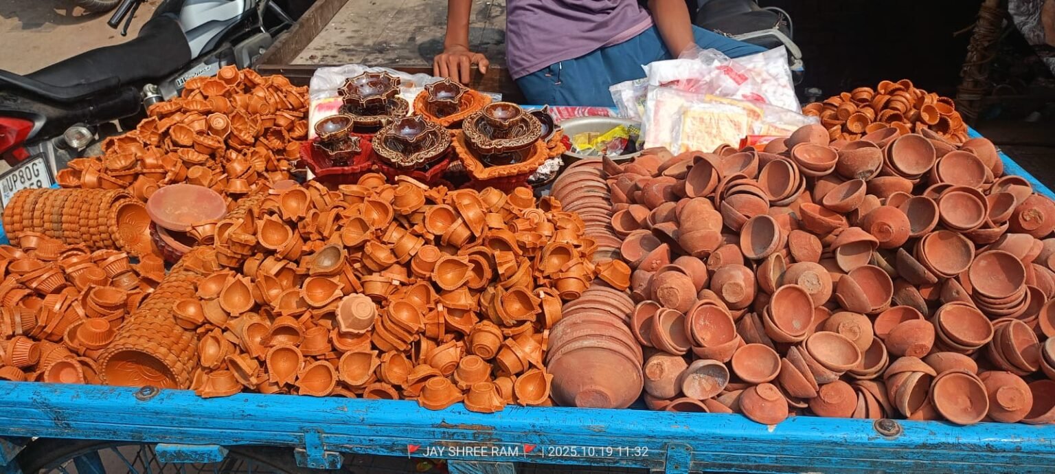 फतेहाबाद/आगरा: दीपों के त्योहार दीपावली पर कस्बा के बाजरो की तस्वीर बदल गई पहले बाजारों में जहां पी ओ पी और चीन में बनी रंगीन मूर्तियां का सबसे अधिक बोल वाला था अब उनकी जगह पर्यावरण अनुकूल सामग्री और मिट्टी से बनी मूर्तियां ने ले ली है अब लोग मिट्टी से बनी लक्ष्मी गणेश सरस्वती आदि मूर्तियां मिट्टी से बने दीपक की खरीदारी को प्राथमिकता दे रहे हैं।