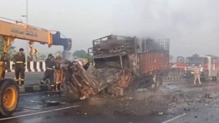 यूपी के अलीगढ़ में दर्दनाक हादसा, कार और कैंटर की आमने सामने भिड़ंत, आग लगने से पांच युवक जिंदा जले