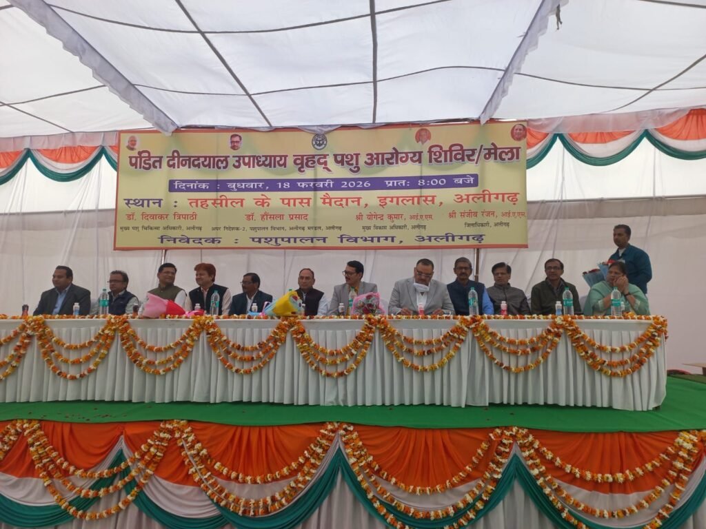 इगलास नगर के हाथरस मार्ग स्थित श्री लाल बहादुर शास्त्री इंटर कॉलेज के सामने खाली प्रांगण में मंडल स्तरीय पंडित दीनदयाल उपाध्याय बृहद पशु आरोग्य शिविर का भव्य आयोजन किया गया। इस शिविर में गांव-गांव से आए सैकड़ों पशुपालकों ने अपने पशुओं का निःशुल्क उपचार कराया और विभिन्न बीमारियों तथा उनकी रोकथाम के बारे में महत्वपूर्ण जानकारी प्राप्त की।
