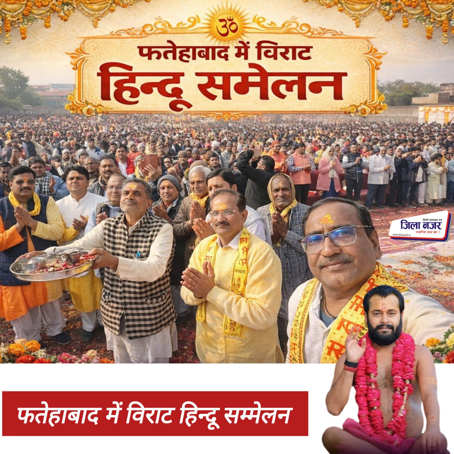 कस्बा फतेहाबाद में शनिवार को ब्लॉक के समीप स्थित मेला ग्राउंड में आयोजित विराट हिंदू सम्मेलन में सर्व हिंदू समाज का अभूतपूर्व जनसैलाब उमड़ पड़ा। हजारों की संख्या में पहुंचे श्रद्धालुओं और समाजसेवियों की उपस्थिति ने सम्मेलन को ऐतिहासिक बना दिया। सम्मेलन के दौरान पूरे क्षेत्र में हिंदू एकता, सनातन संस्कृति और राष्ट्र जागरण का संदेश गूंजता रहा।