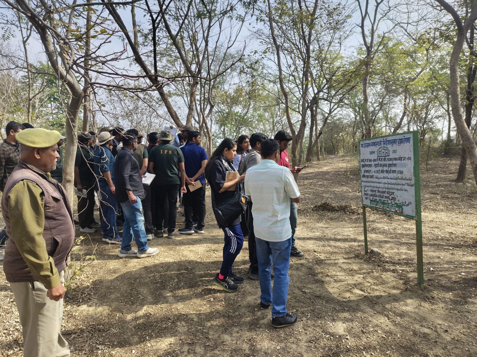 फतेहाबाद/आगरा: भारतीय वन सेवा (आईएफएस) के 60 प्रशिक्षु अधिकारियों के दल ने शुक्रवार को फतेहाबाद क्षेत्र स्थित लुहारी वन क्षेत्र का भ्रमण कर यहां किए गए वृक्षारोपण और वन संरक्षण कार्यों का अवलोकन किया। प्रशिक्षु अधिकारियों का यह दल सुबह 9 बजे लुहारी पहुंचा और करीब दो घंटे तक वन क्षेत्र में विभिन्न गतिविधियों की जानकारी ली।