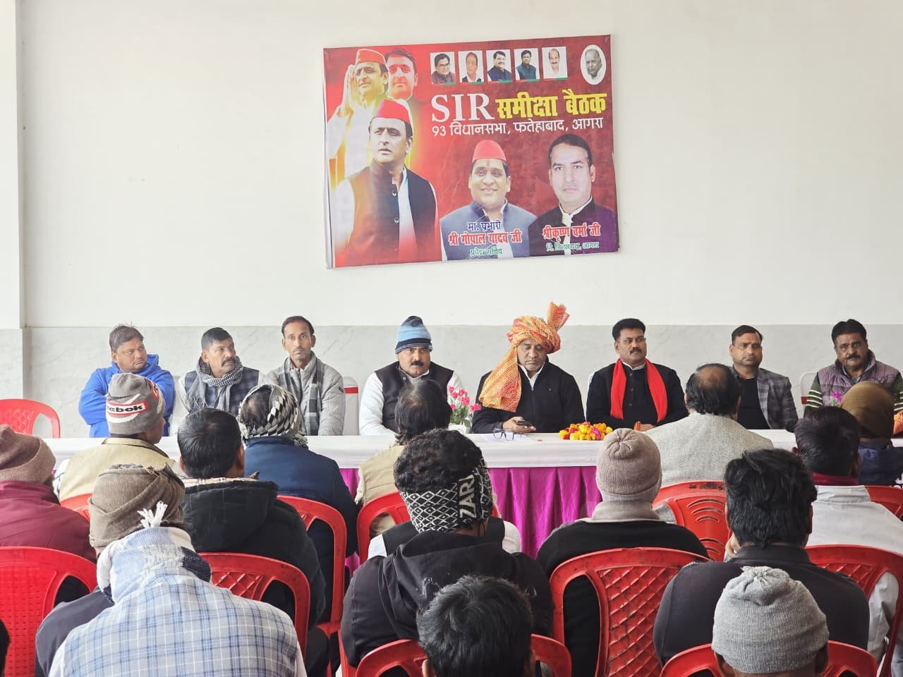 फतेहाबाद/आगरा। सोमवार को समाजवादी पार्टी की एक महत्वपूर्ण आवश्यक बैठक का आयोजन कस्बा फतेहाबाद के मुद्गल गार्डन में किया गया, जिसमें पार्टी के बूथ लेवल अटेंडेंट (BLA), वरिष्ठ नेता एवं बड़ी संख्या में सक्रिय कार्यकर्ताओं ने सहभागिता की। बैठक का मुख्य उद्देश्य मतदाता सूची में हो रही गड़बड़ियों पर चर्चा करना, कटे हुए वोटों का सत्यापन कराना तथा नए मतदाताओं का पंजीकरण सुनिश्चित करना रहा।