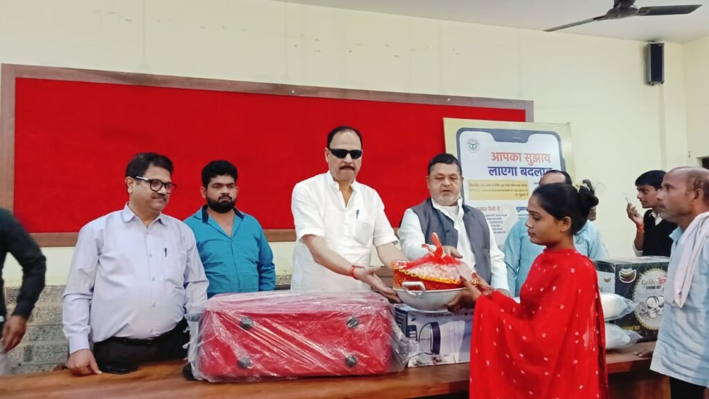 अलीगंज/एटा। मुख्यमंत्री सामूहिक विवाह योजना के तहत ब्लॉक अलीगंज में विवाह संपन्न कराने के बाद नवविवाहित जोड़ों को शासन द्वारा निर्धारित वैवाहिक उपहार सामग्री का वितरण किया गया। इस अवसर पर कुल 81 नवविवाहित जोड़ों को सामग्री प्रदान की गई।