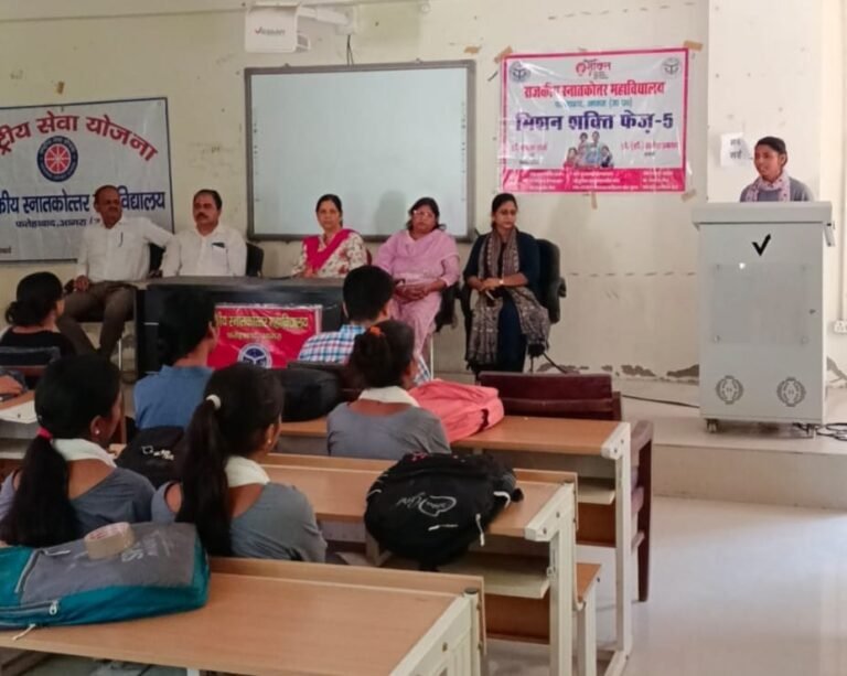 फतेहाबाद/आगरा। राजकीय स्नातकोत्तर महाविद्यालय,फतेहाबाद,आगरा में शुक्रवार को मिशन शक्ति फेज-05 के अंतर्गत “नारी एक,रूप अनेक” विषय पर एक विचार गोष्ठी का आयोजन किया गया। कार्यक्रम की अध्यक्षता करते हुए महाविद्यालय की प्रशासनिक प्राचार्य प्रो. डॉ.अरुणा त्रिपाठी ने नारी के विभिन्न रूपों पर अपने विचार व्यक्त करते हुए कहा कि नारी अपने प्रत्येक रूप से समाज को सशक्त करती है।