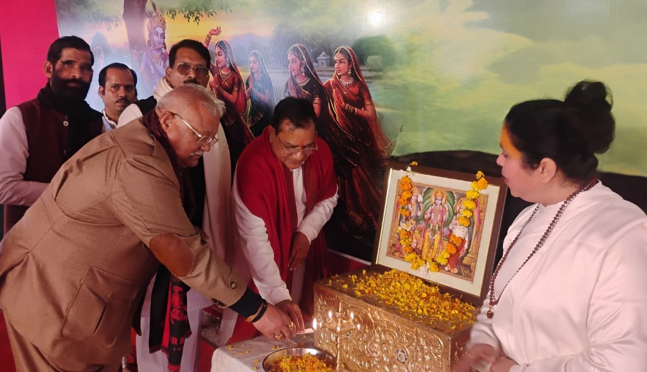 गुरसरांय। बुंदेलखंड कुरैठा महोत्सव अंतर्गत सत्संग श्रीमद्भागवत कथा का भव्य शुभारंभ सोमवार को नावली सरकार प्रांगण में मंत्रोच्चारण और दीप प्रज्वलन के साथ हुआ। कार्यक्रम का उद्घाटन विधान परिषद के सभापति कुंवर मानवेन्द्र सिंह तथा दिव्य प्रेम सेवा मिशन हरिद्वार के संस्थापक अध्यक्ष डॉ. आशीष गौतम भैया जी ने संयुक्त रूप से किया। आयोजन स्थल पर भक्ति, श्रद्धा और अध्यात्म की अमृत रसधारा प्रवाहित होती रही।