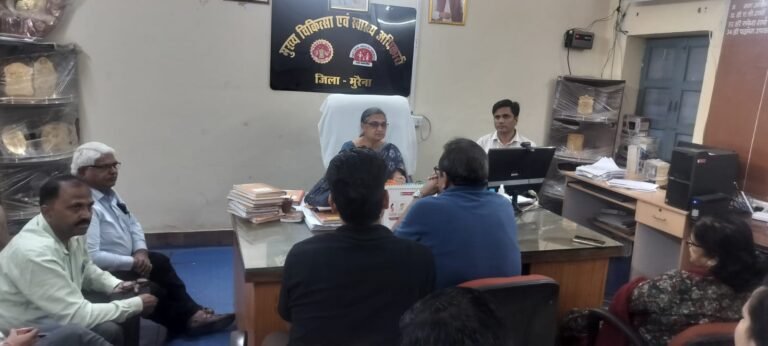 मुरैना/मप्र। क्षेत्रीय संचालक ग्वालियर की संयुक्त संचालक डॉ. नीलम सक्सेना ने मुरैना सीएमएचओ कार्यालय में एक समीक्षा बैठक की। इस बैठक में मुख्य चिकित्सा एवं स्वास्थ्य अधिकारी डॉ. पदमेश उपाध्याय, सभी प्रोग्राम ऑफिसर और कार्यालय कर्मचारी उपस्थित थे।