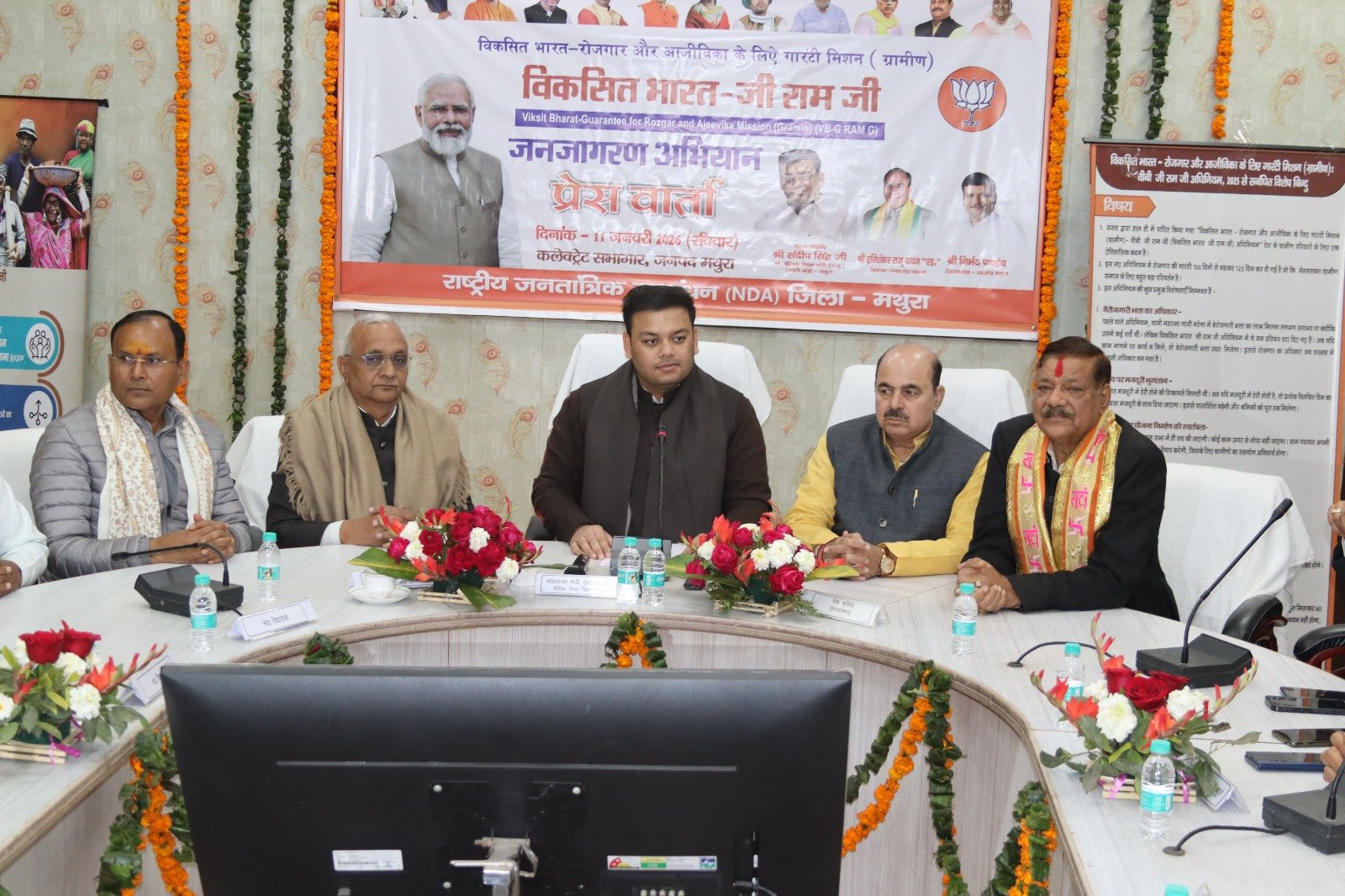 मथुरा। कलेक्ट्रेट सभागार में आयोजित प्रेसवार्ता में माननीय प्रभारी मंत्री/राज्यमंत्री (स्वतंत्र प्रभार) बेसिक शिक्षा विभाग संदीप सिंह ने कहा कि संसद द्वारा पारित “विकसित भारत–रोजगार और आजीविका के लिए गारंटी मिशन (ग्रामीण): वीबी–जी राम जी अधिनियम” ग्रामीण परिवारों के लिए एक ऐतिहासिक कदम है। यह अधिनियम संशोधित स्वरूप में ग्राम पंचायतों के माध्यम से ग्रामीण विकास, आजीविका और सामाजिक-आर्थिक सशक्तिकरण को और मजबूत करेगा।