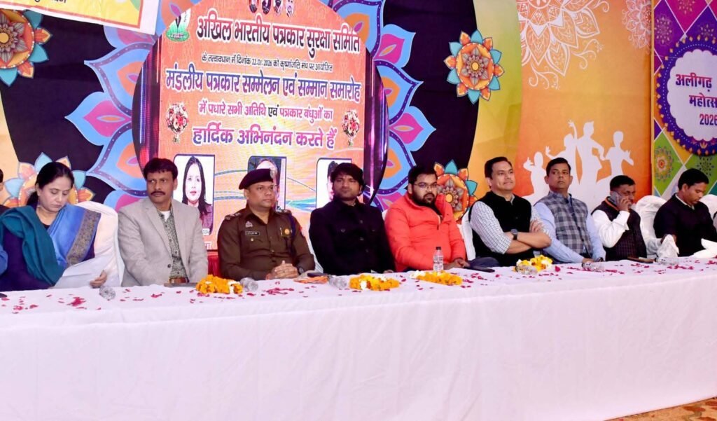 अलीगढ़। अखिल भारतीय पत्रकार सुरक्षा समिति के बैनर तले कृष्णांजली नाट्यशाला में चतुर्थ मंडलीय पत्रकार सम्मेलन का आयोजन हुआ। कार्यक्रम में मंडल स्तर के पत्रकारों के अलावा अतिथि के रूप में अन्य जिलों से भी पत्रकार पहुंचे। कार्यक्रम का संचालन योगेश कौशिक (दैनिक जागरण) ने किया, जबकि अध्यक्षता सहायक सूचना निदेशक संदीप सिंह ने की।