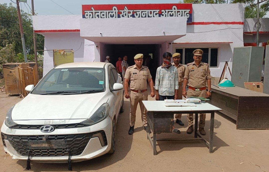 पुलिस के अनुसार, अर्जित कुमार पुत्र रमेश चंद्र निवासी बदनपुर थाना इंदरगढ़, जनपद कन्नौज को खैर क्षेत्र से गिरफ्तार किया गया। आरोपी के कब्जे से एक मोबाइल फोन (मोटोरोला E40), 1200 रुपये नगद और एक कार (HR 55A 0449) बरामद की गई है।