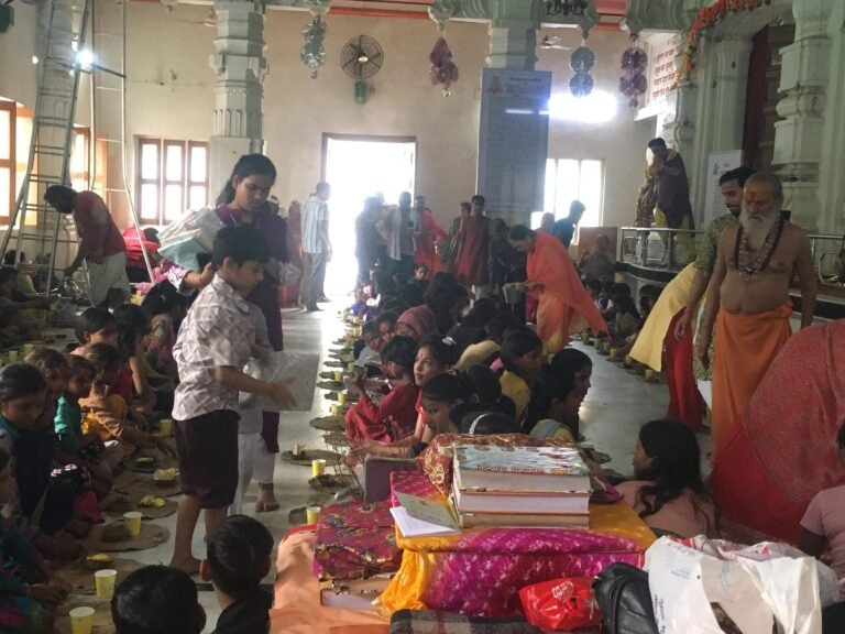 वृन्दावन।छटीकरा रोड़ स्थित चिंतामणि कुंज में शारदीय नवरात्रि के उपलक्ष्य में महामंडलेश्वर स्वामी डॉ. आदित्यानंद महाराज के पावन सानिध्य में चल रहा शतचंडी महायज्ञ अत्यंत श्रद्धा एवं धूमधाम के साथ सम्पन्न हुआ।जिसके अंतर्गत सैकड़ों कन्या-लांगुराओं का पूजन-अर्चन कर उन्हें भोजन प्रसाद ग्रहण कराया गया।साथ ही उन्हें वस्त्र, दक्षिणा एवं अनेक उपहार भी वितरित किए गए।
