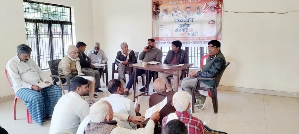 बैठक को संबोधित करते हुए खंड विकास अधिकारी रजत कुशवाहा एवं एपीओ सुशील कुमार निगम ने संयुक्त रूप से बताया कि मनरेगा के अंतर्गत वीबीजी (विकसित भारत गारंटी) राम अधिनियम–2025 लागू किया जा रहा है, जिसके तहत योजना में व्यापक परिवर्तन किए गए हैं। उन्होंने बताया कि अब ग्रामीण मजदूरों को 100 दिन के स्थान पर 125 दिन का रोजगार उपलब्ध कराया जाएगा, जिससे ग्रामीण परिवारों की आय में उल्लेखनीय वृद्धि होगी।