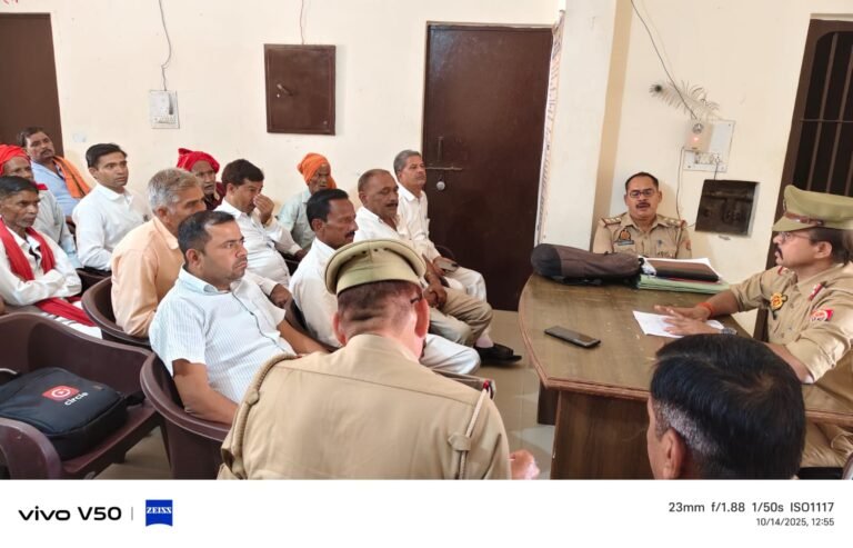 फतेहाबाद/आगरा: थाना निबोहरा में इंस्पेक्टर जय नारायण सिंह की अध्यक्षता में ग्राम प्रधानों एवं क्षेत्र के सम्मानित नागरिकों की बैठक आयोजित की गई। बैठक में सामाजिक सौहार्द, कानून व्यवस्था और सड़क सुरक्षा को लेकर कई अहम निर्देश दिए गए।
