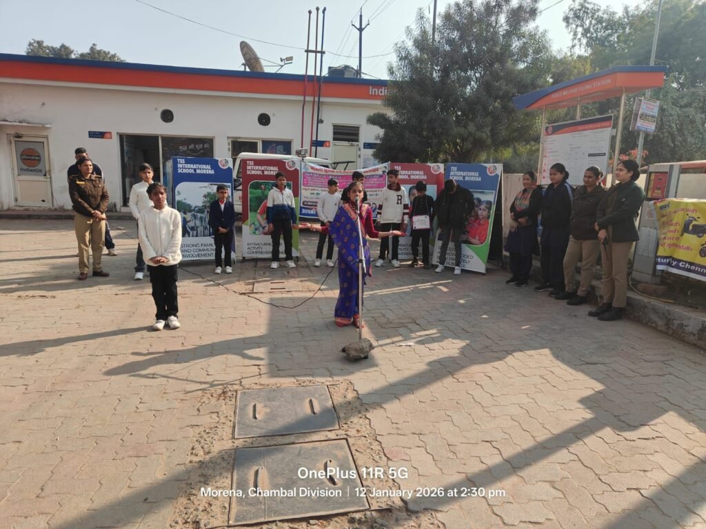 आज दिनांक 12 जनवरी 2026 को कार्य निरी. नेहा शर्मा के नेतृत्व में टी.एस.एस. विद्यालय, मुरैना के छात्र-छात्राओं द्वारा पुलिस पेट्रोल पम्प, मुरैना परिसर में सायबर सुरक्षा, सायबर अपराध, सायबर फ्रॉड, महिला संबंधी अपराध एवं उनसे बचाव के उपायों तथा नशे से होने वाले दुष्प्रभावों के विषय में जनजागरूकता हेतु नुक्कड़ नाटक का आयोजन किया गया। उक्त कार्यक्रम में छात्र-छात्राओं द्वारा नुक्कड नाटक के माध्यम से आमजन को सायबर अपराधों से सतर्क रहने, ऑनलाइन ठगी से बचाव, महिलाओं के प्रति होने वाले अपराधों की रोकथाम एवं नशे के दुष्परिणागों आदि के प्रति जागरूक किया।