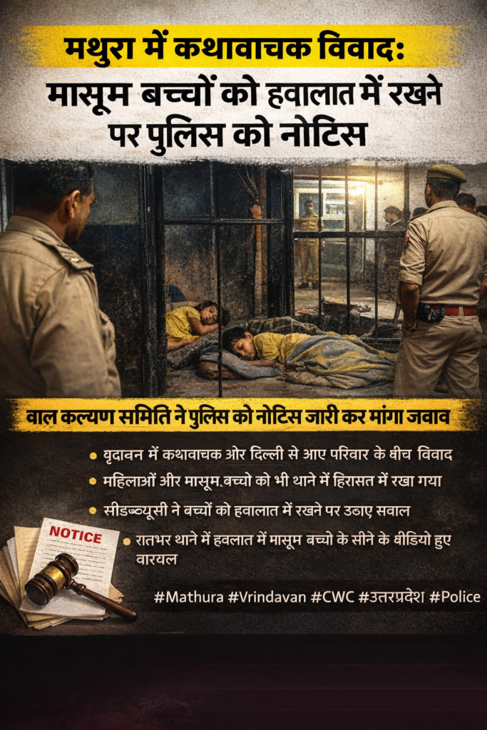 घटना के बाद पुलिस ने परिवार की महिलाओं के साथ दो छोटे बच्चों को भी हिरासत में ले लिया। इस कार्रवाई पर सवाल उठाते हुए बाल कल्याण समिति (CWC) ने स्वतः संज्ञान लिया और वृंदावन पुलिस को नोटिस जारी कर जवाब मांगा है।