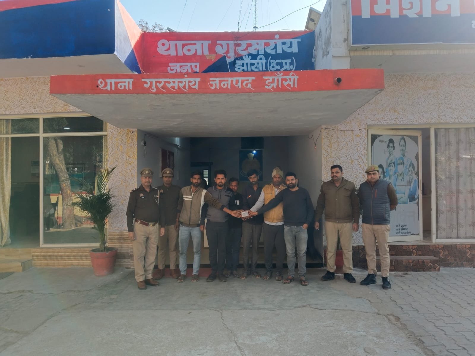 गिरफ्तार किए गए अभियुक्तों अनूप पुत्र बालमुकुंद,हरनारायण पुत्र दुर्गा प्रसाद, महेंद्र पुत्र हरगोविंद, रोहित पुत्र संतोष, रविंद्र पुत्र कन्हई, निक्की पुत्र राजेंद्र अग्रवाल निवासीगण थाना गुरसरांय जिला झांसी गिरफ्तार करने वाली पुलिस टीम में थाना प्रभारी गुरसरांय इंस्पेक्टर अमीराम सिंह,सब इंस्पेक्टर मयंक मिश्रा,कांस्टेबल अमृत सिंह,कांस्टेबल कपिल सिंह, कांस्टेबल श्याम सुंदर थाना गुरसरांय आदि प्रमुख रहे।