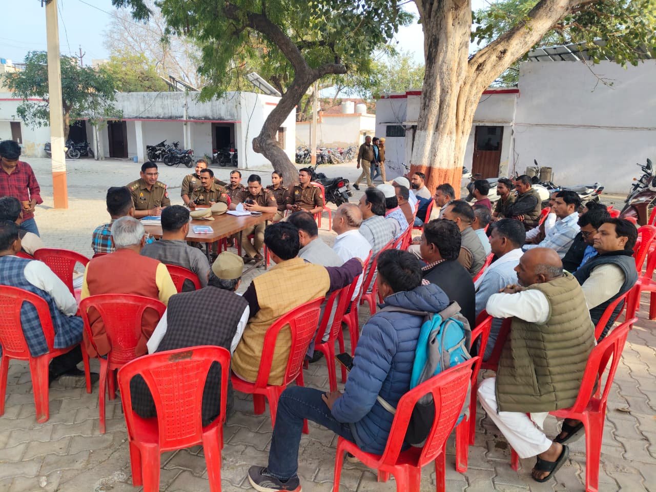 बैठक में थाना प्रभारी आनंद बीर सिंह ,कस्बा चौकी इंचार्ज प्रमोद यादव, एसआई सोम सहित अन्य पुलिसकर्मी मौजूद रहे। वहीं नगर की ओर से नगर पालिका पूर्व अध्यक्ष बदरुद्दीन कुरैशी ,सभासद गढ़, भाजपा मंडल अध्यक्ष ओम कांत डागुर , सपा नेता गब्बर कुरैशी, डॉक्टर मोहम्मद मुस्तकीम कुरैशी, आदित्य फौजदार,राशिद हसन चिश्ती , अल्ताफ कुरेशी, होशियार सिंह, युसूफ कुरैशी, संतोष चाहर,इमरान सभासद,अफसर पहलवान, डॉक्टर एस एस खान,सहित,गब्बर कुरैशी नगर के अनेक गणमान्य नागरिक उपस्थित रहे, जिन्होंने प्रशासन को पूर्ण सहयोग का आश्वासन दिया।